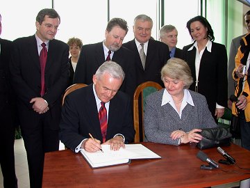 Prezes Rady Ministrów - Leszek Miller, wicepremier - Marek Pol oraz ministrowie edukacji i sportu - Krystyna Łybacka, zdrowia - Mariusz Łapiński, spraw wewnętrznych i administracji - Krzysztof Janik, sprawiedliwości - Barbara Piwnik oraz kultury - Andrze