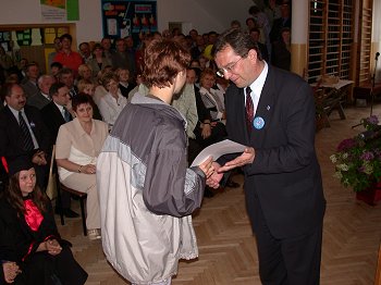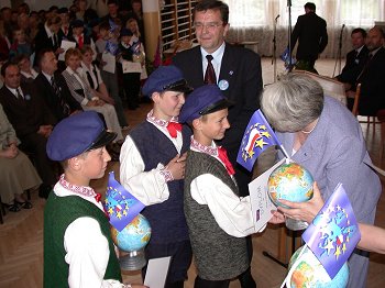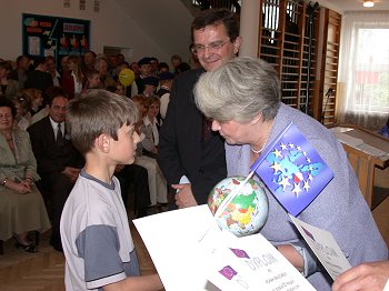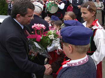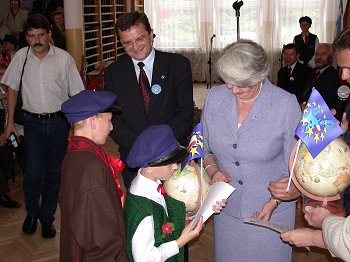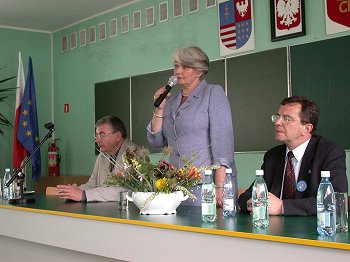 Przebywająca w województwie świętokrzyskim, w ramach rządowej kampanii informacyjnej przed referendum akcesyjnym, Krystyna Łybacka - Minister Edukacji Narodowej i Sportu spotkała się ze studentami Wyższej Szkoły Handlowej w Kielcach oraz, wspólnie z Włodz