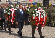 Odczytano Apel Poległych, oddano salwę honorową i złożono kwiaty przed pomnikiem. Tradycyjnie wręczone zostały medale i odznaczenia oraz mianowania na wyższe stopnie wojskowe. „Stajemy tu dzisiaj, aby oddać hołd żołnierskiej krwi przelanej za Ojczyznę. Stajemy tu, by pokłonić się cieniom żołnierzy wszystkich polskich wojen i wszystkich polskich bitew. Bez ich ofiary nie byłoby bowiem Polski, także tej dzisiejszej - tej wolnej, suwerennej i demokratycznej. Ich postawa to wzór do naśladowania dla naszych współczesnych Sił Zbrojnych. W dniu Święta Wojska Polskiego myślimy także o współczesnym żołnierskim pokoleniu. Pokoleniu, któremu przychodzi stać na straży bezpieczeństwa odrodzonego po 1989 roku niepodległego i demokratycznego państwa, któremu przychodzi służyć społeczeństwu " - mówił wicewojewoda.