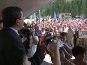 Z protestującymi pracownikami Zakładów Ostrowieckich Huty "Ostrowiec" S.A. w Ostrowcu Św. rozmawiał Włodzimierz Wójcik - Wojewoda Świętokrzyski