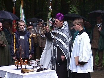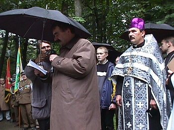 "Na Ziemi Świętokrzyskiej od czasów powstania styczniowego, wojen światowych i terroru komunistycznego pozostało wiele grobów. Wiele grobów polskich bohaterów i żołnierzy innych narodowości: Rosjan, Niemców, Austriaków. Przyszedł czas, w którym powinniśmy tym żołnierzom, zarówno naszym, polskim, jak i tym obcym, oddać hołd. Byli to ludzie nie związani z polityką, walczący w imię często niejasnych dla nich interesów. Musimy mieć świadomość, że zamordowani tu w czasie okupacji radzieccy żołnierze nie mieli własnej ojczyzny. Stalin powiedział bowiem, że nie ma więźniów wojennych, są tylko zdrajcy. Żołnierze ci nie umierali za ojczyznę - umierali w imię trudno wytłumaczalnej logiki. Dziś, z perspektywy czasu, możemy tak to traktować. Ale wierzę, że ten najgorszy, tragiczny okres mamy już za sobą" - powiedział Wojewoda Świętokrzyski, witając gości.